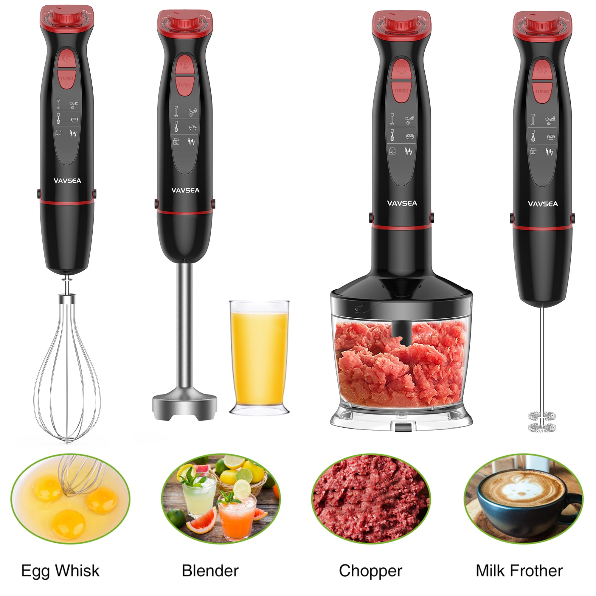 VAVSEA Immersion Hand Blender, 12-Speed Multi-Function Handheld Stick Blender with Stainless Steel Blades, Chopper, Beaker, 600ml, Whisk and Milk Frother for Baby Food/Smoothies/Puree, BPA Free
