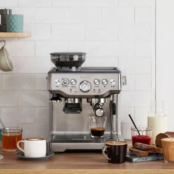- The Breville Barista Express delivers third wave specialty coffee at home using the 4 keys formula and is part of the Barista Series that offers all in one espresso machines with integrated grinder to go from beans to espresso in under one minute.Grind Settings : 16 precision grind settings, Tamping : Manual removable magnetic tamper,.Pressure Gauge : Extraction Feedback pressure gauge. Interface : Simple button control.
