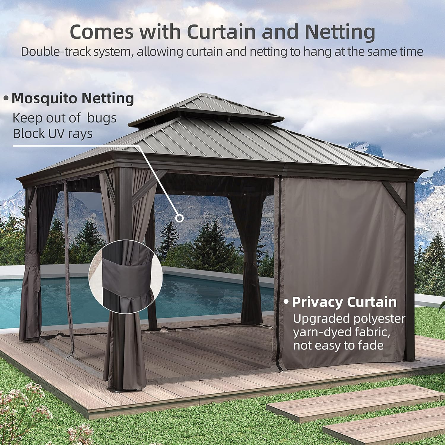 A quick tip for future buyers: I highly recommend watching a YouTube video before starting assembly¡ªthere are a few tricks (like not tightening certain bolts too early) that make things much easier. Also, note that the gazebo comes with netting only, not curtains. Hopefully, the seller sends a free curtain set our way