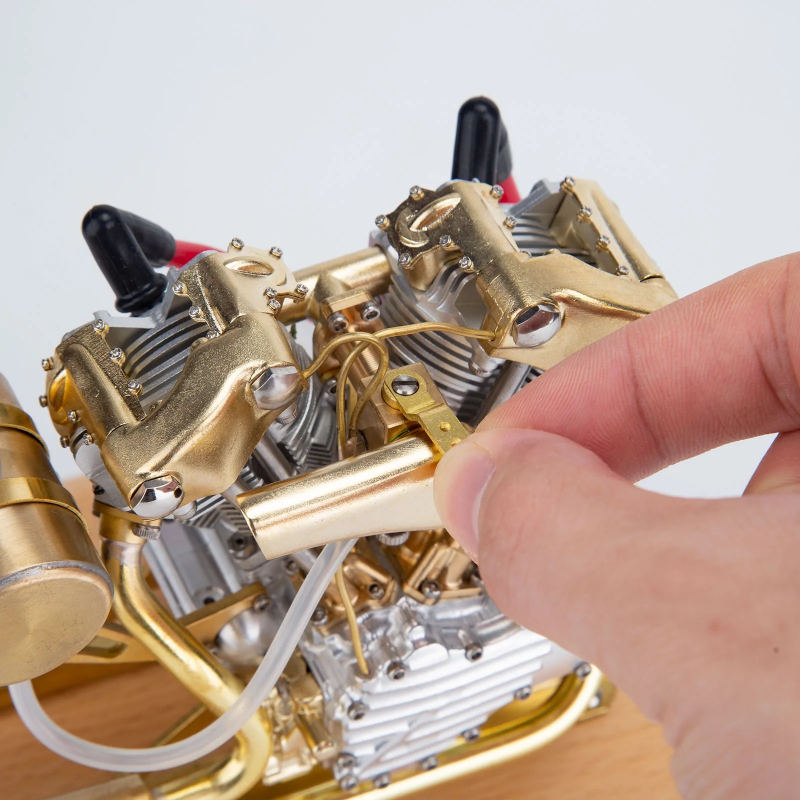 .Based on the V-twin double-cylinder Knucklehead motorcycle engine in the 1970s, the miniature gasoline mini knuckle head engine model embodies the spirit of different ages in a wonderful way.