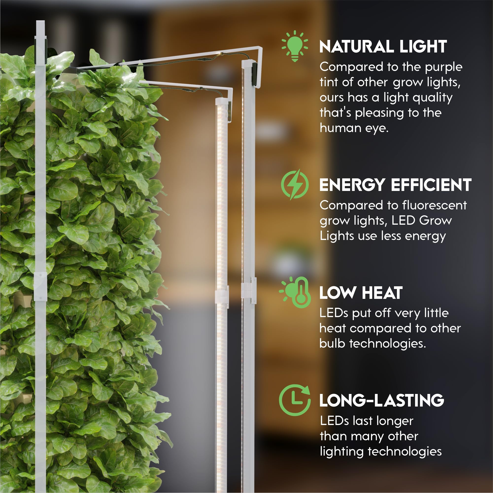 Space-saving design 5 feet, 6 inches tall, 2 feet wide. Plus a 1-foot LED extensions